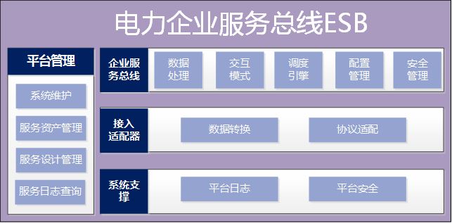 電力企業服務總線ESB將企業中各個系統應用程序的不同功能單元抽象為服務,實現業務應用系統和其他系統的功能調用的統一接入,業務應用系統和公共功能作為標準服務在總線上公開,隔離服務消費者和服務提供者的技術實現細節,實現松耦合,為各應用系統間的服務及數據交互提供安全可靠、高性能、可擴展的集成平臺。