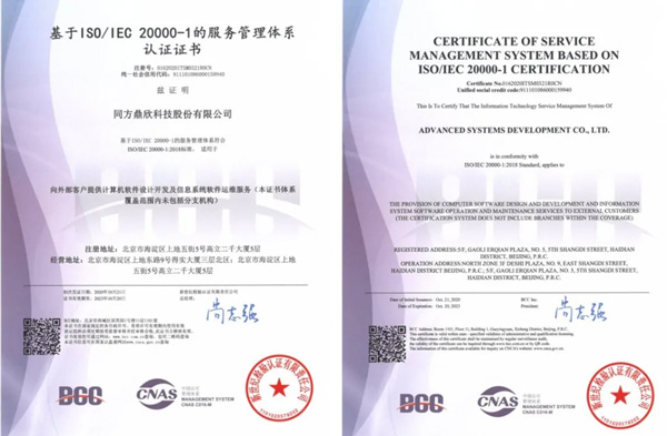 近期,經過權威認證機構的嚴格監督審核,同方鼎欣順利通過ISO/IEC 20000-1服務管理體系ISO/IEC 20000-1:2018標準的復審認證。此次監督審核,是對同方鼎欣信息服務管理體系執行情況的一次檢驗,監審通過,標志著同方鼎欣在信息技術服務和運營效率方面保持先進水平,提供的IT服務和管理能力始終保持國際認證的最高標準。
