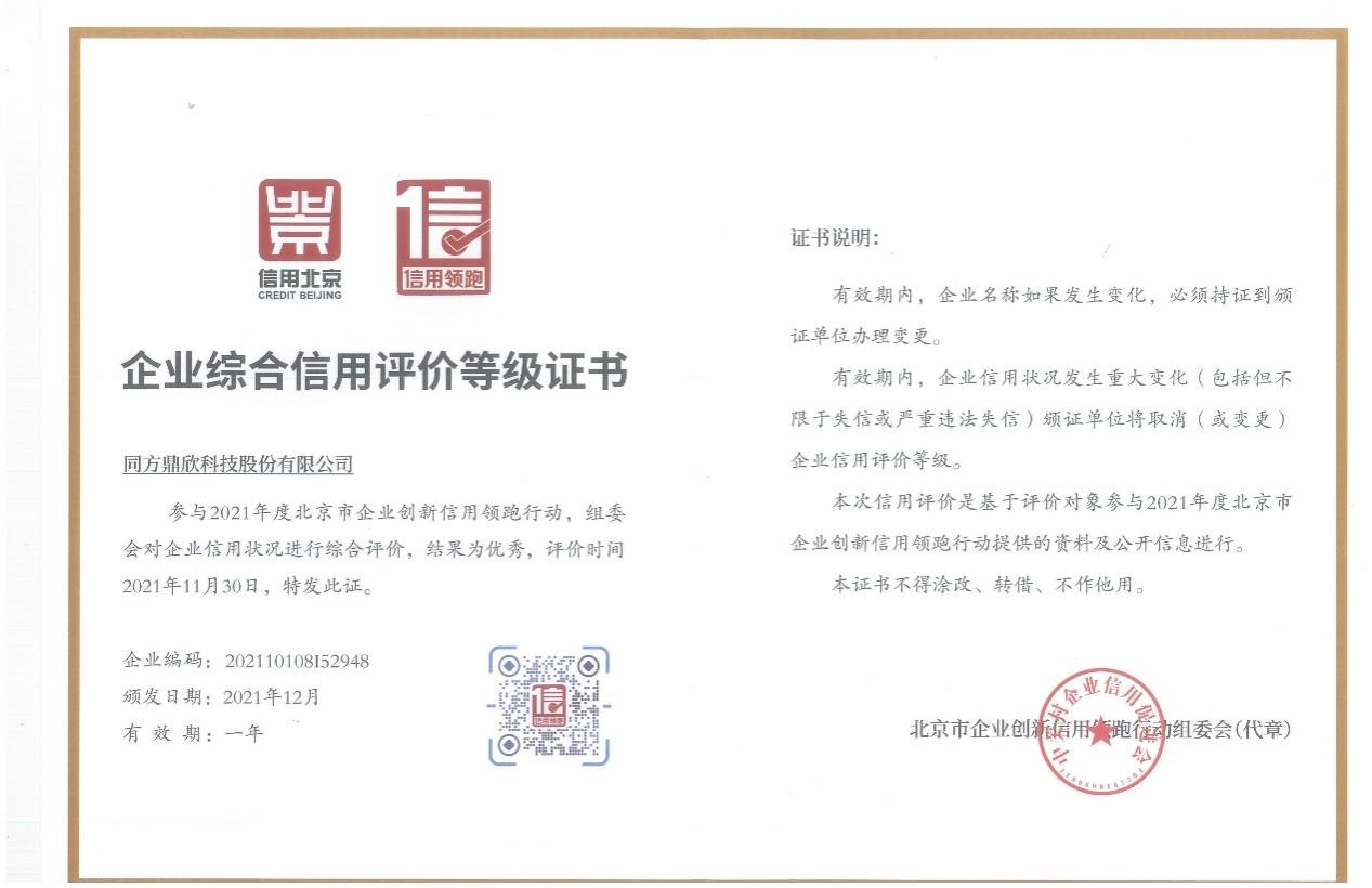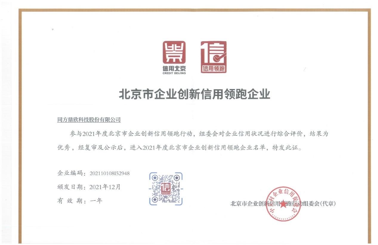 2021年度北京市創(chuàng)新信用領(lǐng)跑證書頒發(fā)儀式