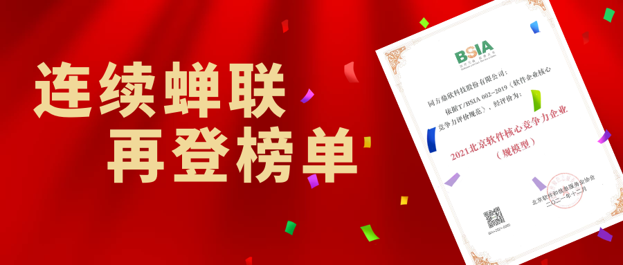 2022年1月7日,北京軟件和信息服務業(yè)協(xié)會(簡稱“北京軟協(xié)”)第十屆會員代表大會第二次會議在線成功召開。會議期間重磅發(fā)布了《2021北京軟件和信息技術服務企業(yè)綜合實力報告》和《2021北京軟件企業(yè)核心競爭力評價報告》兩大報告,同方鼎欣憑借良好的發(fā)展態(tài)勢、卓越的市場表現(xiàn)和軟件創(chuàng)新實力,連續(xù)六年強勢登榜,再次入選“2021北京軟件和信息服務業(yè)綜合實力前百家企業(yè)”榜單,并連續(xù)三年獲評“2021北京市軟件企業(yè)核心競爭力評價(規(guī)模型)企業(yè)”。
