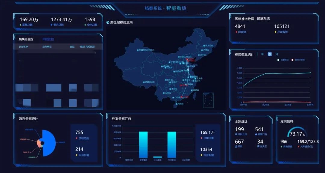 亮點三:充分利用檔案數據智能看板,實時監督全集團檔案運行