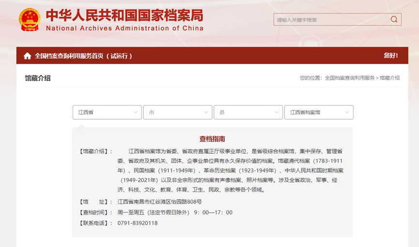 江西檔案共享利用平臺的建設始于2012年,本平臺的建設是為了聯通各級國家綜合檔案館及其同級立檔單位,并將省檔案館檔案資料查閱平臺部署其上,供各市、縣檔案局(館)使用,實現了數字檔案資源的異地備份和集中共享,開展館際之間、館室之間的查檔指引服務。目前已開通江西省全部11個設區市、44個縣級檔案館以及21家省直機關連通并登錄查閱平臺,支撐起了全省省、市、縣三級綜合檔案館的基本業務,可實現各門類檔案數字資源的收、管、存、用和遠程出證。截止目前該平臺共存儲備份了三級綜合檔案館目錄數據4004萬條、紙質檔案數字副本3180余萬件。目前本平臺已實現與“贛服通”的對接,并可向電子證照系統推送檔案證明件。2022年,本平臺高分通過了國家檔案局組織的“全國示范數字檔案館”系統測試,成為了全國第5家通過測試的省級國家綜合檔案館。