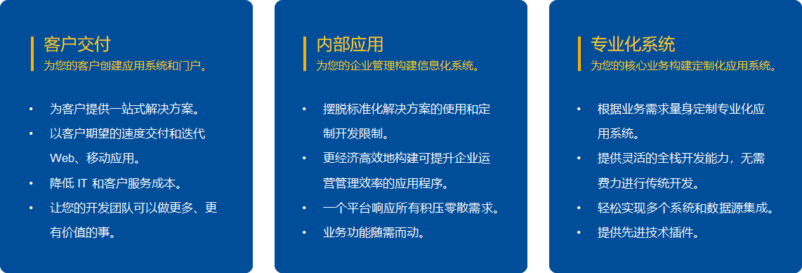 本平臺為將信創落實到實處,堅持?主創新,注重國產化信創環境的適配。操作系統是信息安全產業底層中?,本平臺與多款主流國產操作系統適配,如統信操作系統、麒麟操作系統;同時內置接?,可以快速友好的同其他IT系統或智能硬件進?整合,并?持主流國產數據庫達夢、?斯等。 可實現由0-1的定制核心業務應用系統搭建、舊系統的數據遷移和換新,并可統一承接、快速搭建非核心的業務模塊。可用于IT運維管理平臺、檔案管理系統、OA系統等眾多應用場景。