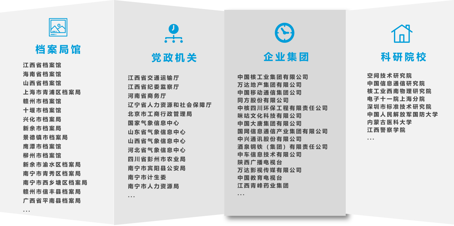 在數字檔案領域,鼎欣科技深耕多年,公司始終將提升檔案管理水平、促進國產化自主生態建設作為核心技術發展方向,在與各市縣各級檔案館局客戶的合作中得到實踐運用與優化升級,為各級客戶量身打造了以數字資源為基礎、安全管理為保障、遠程利用為目標的全新數字檔案管理系統。先后助力上海青浦區檔案局以地市級最高分通過國家數字示范檔案館測評;助力江西省檔案館高分通過“全國示范數字檔案館”系統測試,成為全國第5家通過測試的省級國家綜合檔案館。