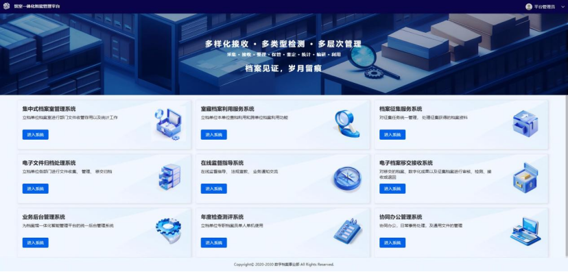 該系統應用場景豐富,可廣泛應用于各級檔案館、金融機構、能源基建企業、跨國企業等,以技術創新賦能不同行業的檔案管理數字化轉型,通過技術賦能實現檔案管理的精細化與集約化運營,助力企事業單位降本增效,實現成本節約、效率提升、資源復用、業務增值、風險防控等需求。產品開發過程中有效結合了檔案數字化技術和人工智能技術,采用云計算和區塊鏈技術,結合大數據、大模型等技術,實現檔案編研智能化。