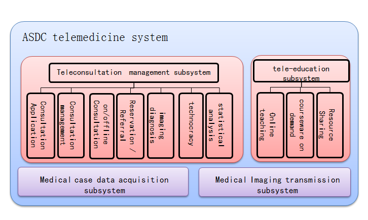 ASDC telemedicine system is based on its own imaging platform to create solutions, providing remote imaging group consultation, interactive clinical consultation and remote education and training, the three medical care services patterns, which helps hospital construct its own remote group consultation center, more convenient to give full length of the role of its own medical experts.