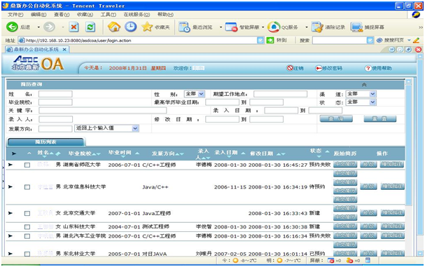 要員の選定については、同方鼎欣には厳格な面接フローがあります。その中にはCV絞込み、電話面接、筆記試験、外國語試験、面接などがあります。面接結果を「面接記録表」に記録して、人材庫に登録します。次の畫面をご參照ください。